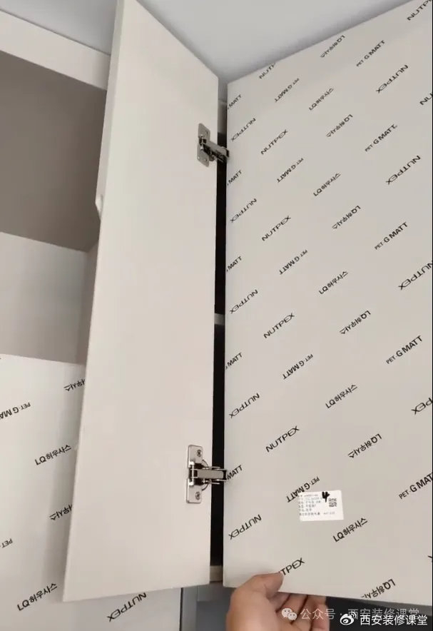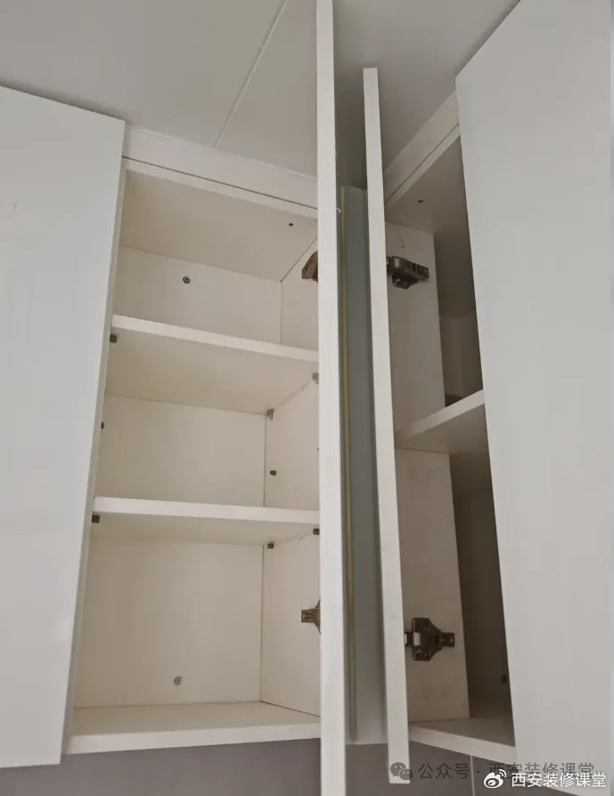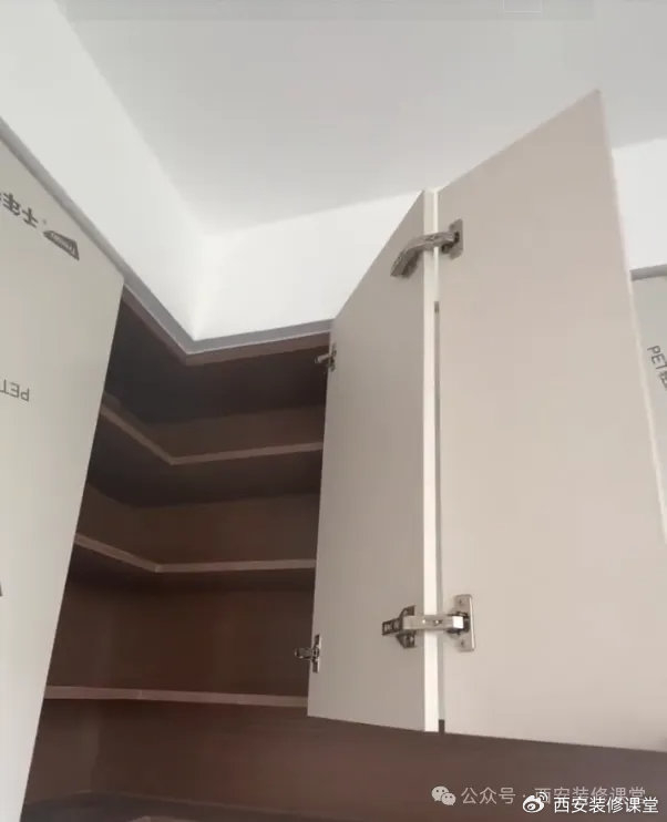 解决办法1:吊柜转角大柜门,一定是大门压小门,统一采用大角度铰链即可。