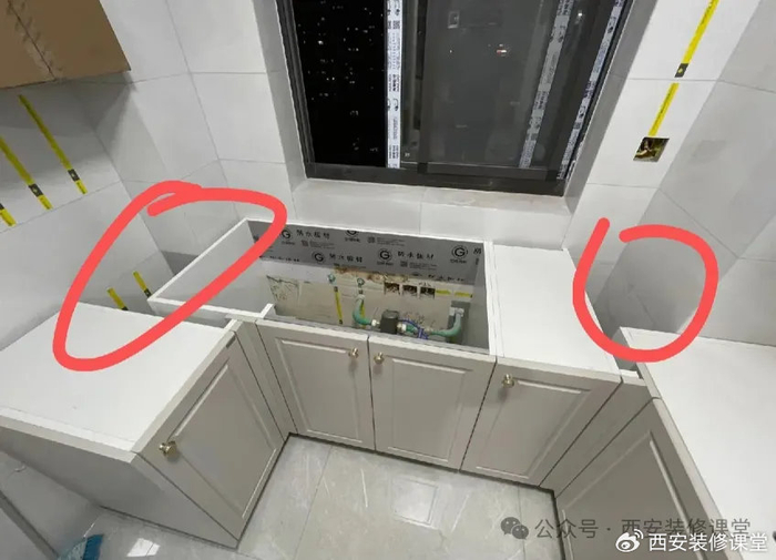 网友@暴富:为了省钱找亲戚砖砌的橱柜,结果转角位置太深了,放东西压根没法使用。