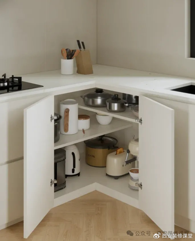 橱柜地柜转角设计,是不需要独立花一分钱的,都在延米价格里头包含,除非有人让你花几千元买个转角拉篮,用钱能解决有什么价值?谁都能解决《装修别搞 “炫技式设计”!看着高级,入住全是坑》