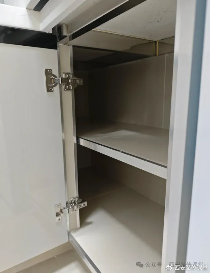网友@泡沫:一边是柜门,一边是抽屉,嫌边线难看没有留,结果抽屉与明拉手打架,防不胜防。解决办法:要不不用明拉手,要不抽屉左边加边线。
